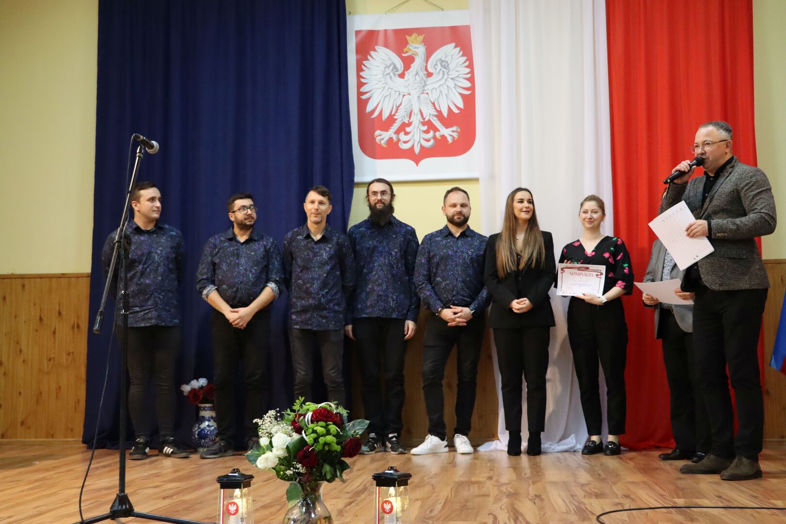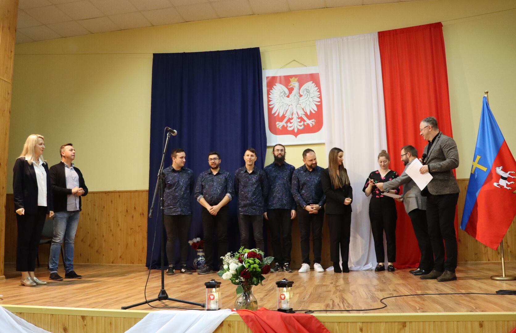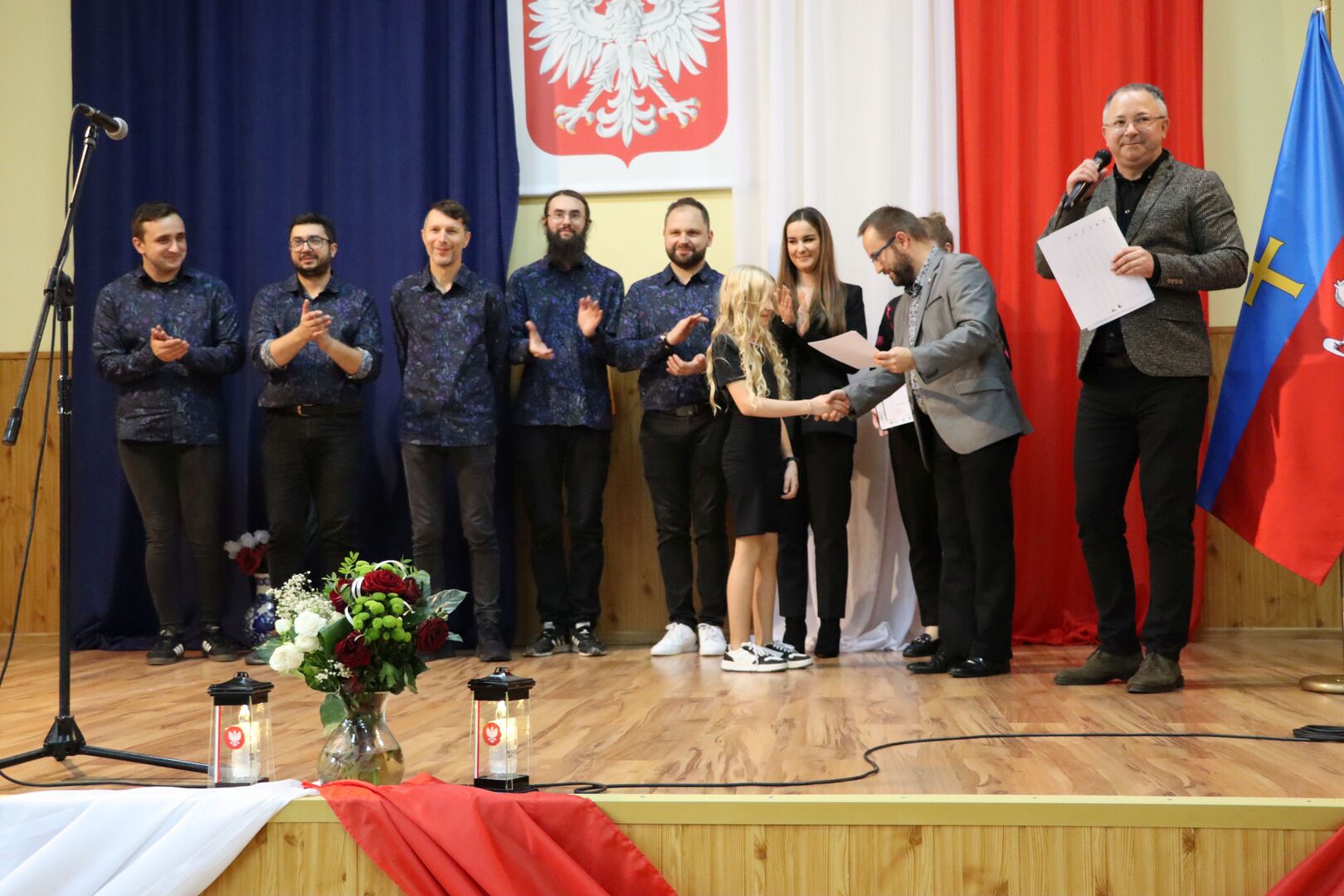 W imieniu Zarządu Powiatu Włoszczowskiego gratulacje zwycięzcom oraz wyrazy uznania dla wszystkich uczestników złożył Rafał Pacanowski, członek Zarządu Powiatu. Podkreślił on wysoki poziom artystyczny prezentacji oraz zaangażowanie młodych wykonawców w kultywowanie tradycji i wartości patriotycznych.