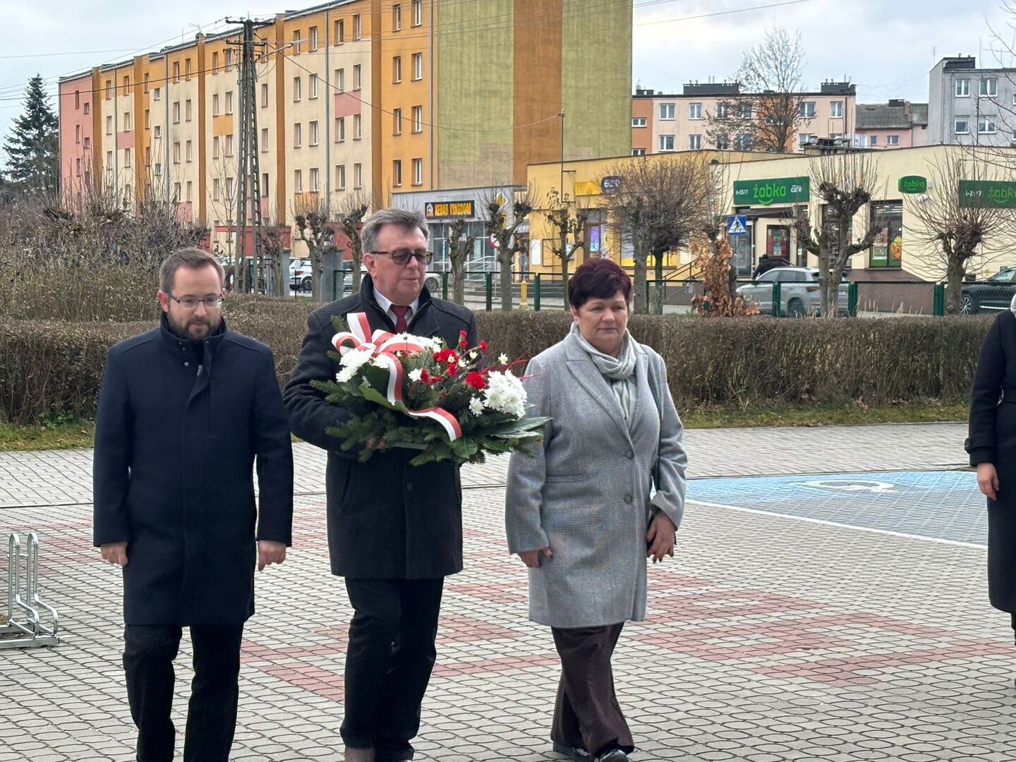 Następnie delegacja udała się na plac szkolny Zespołu Szkół nr 3 im. Stanisława Staszica, gdzie przy pamiątkowych tablicach upamiętniających dziesięciolecie i czterdziestolecie obrony krzyży w Zespole Szkół Zawodowych złożono kwiaty oraz zapalono znicze. Podkreślono, że pielęgnowanie pamięci o wydarzeniach z grudnia 1984 roku jest niezwykle istotne, ponieważ wiara stanowi fundament naszego życia i tożsamości, z której wyrastamy, a której należy bronić i strzec.